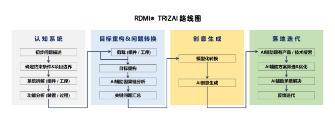 一、基本介绍“RDMi®TRIZAI”是RDMi®方法论专家团队基于现代TRIZ理论与AI融合的实践经验总结而成的一套用于指导企业解决各类痛点问题的独创创新服务体系。其核心逻辑是:常规方式使用AI处理技术创新问题时,往往会出现方案缺乏创新性、方案泛泛无可操作细节、方案脱离工程实际等问题,无法直接解决企业的痛点、卡点。因此可以先运用现代TRIZ理论提供的强大工具对问题进行科学的拆解和分析,把模糊的问...