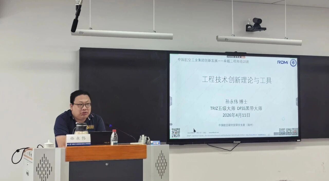 2026年4月11日,中国航空工业集团“创新发展·卓越工程师培训班”在中国航空研究院研究生院举办。来自全国各地的特级技术专家、总师及一级卓越工程师等齐聚扬州。TRIZ五级大师(TRIZ Master)、DFSS黑带大师孙永伟博士主讲《工程技术创新理论与工具》。#TRIZ
